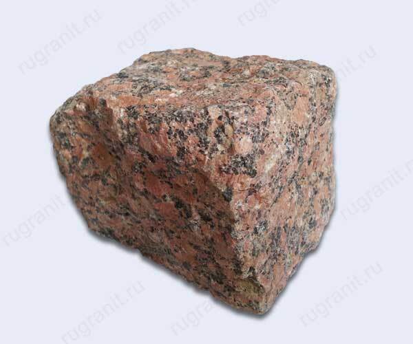 Гранитная брусчатка колотая, размер 10x10x10 см, цвет красный.